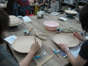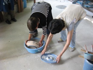 納得のいく出来上がりになり、講師のOKが出た人から、釉薬を付けていきます。