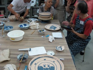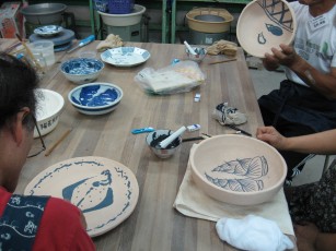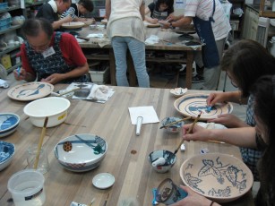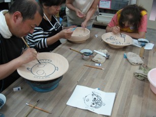 そして絵付けを始めます。呉須(ごす)の使い方や絵付けのやり方を教わります。