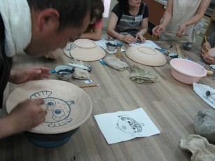 皆さんが忘れずに来てくださったので一安心。そして宿題に出されていた うつわに描く絵柄を全員が考えてきてくれていたことに驚き