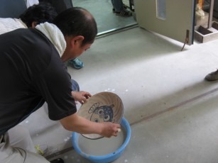 まずは呉須の準備です。お茶碗に呉須と水を入れ練ります。普通なら何時間も練るそうですが今日は時間の都合上省略。
