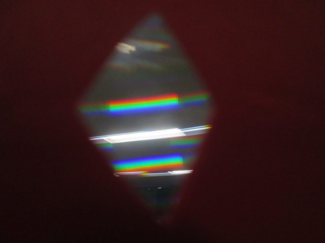 先生に配ってもらった透明のシートで部屋のLED照明をみてみると・・・・