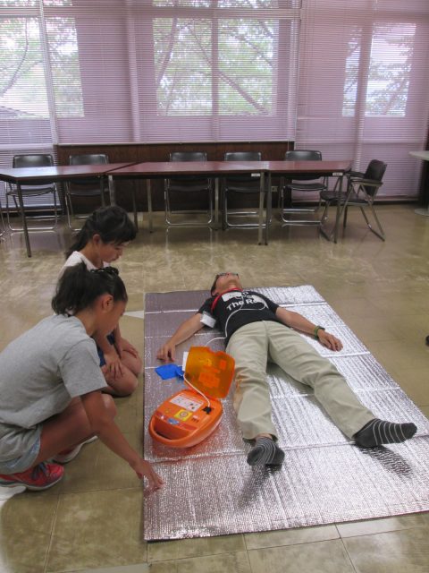 風の国では、書いてあることや音声に従ってAEDを使ってみることを。