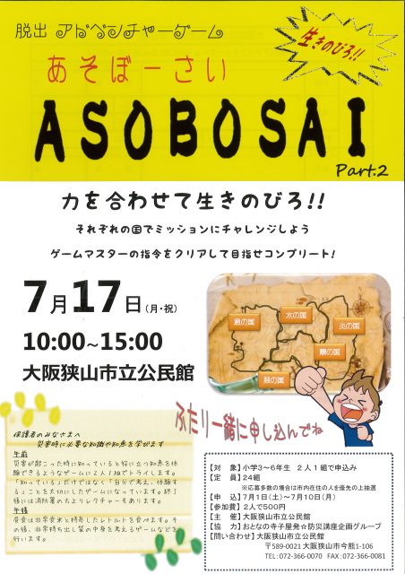 7月17日(月・祝)午前10時~午後3時。脱出アドベンチャーゲーム『ASOBOSAI』part.2を実施しました。
