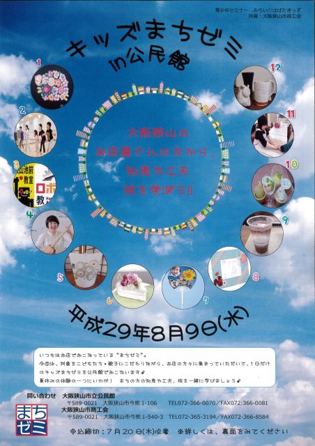 この事業は、商工会さんからの持込みで生まれた企画で、日頃は、各店舗で行われている『まちゼミ』をこども、親子に特化した内容にこだわって、賛同頂けたお店の方々に公民館に集まって頂いて実施した事業です。