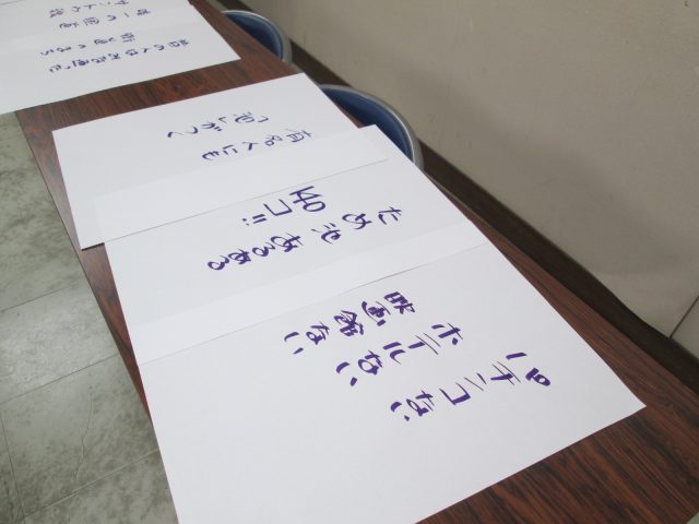 出来上がった各回の成果物は、公民館、中央階段の踊り場に展示し、たくさんの方々に観て頂き、そして、書き加えて頂きました。