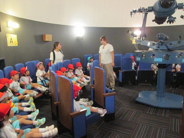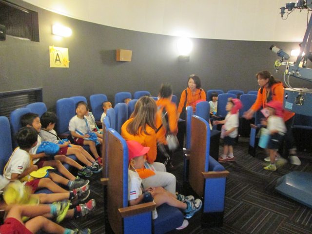 市内の幼稚園、こども園、保育園、放課後児童会の皆さんが夏の星座解説や七夕のおはなしをききに来てくれました。