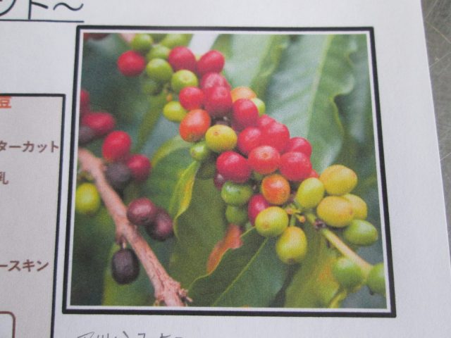 こちらが、コーヒーの実です。収穫できるまでには、4~5年もかかるそうです。