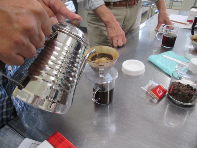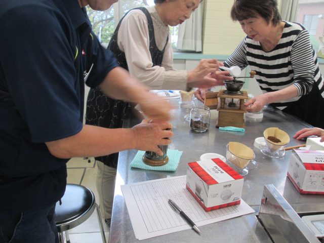 2時間目は美味しい淹れ方を教えて頂き実際に豆を挽いて一人づつペーパードリップに挑戦してみました。