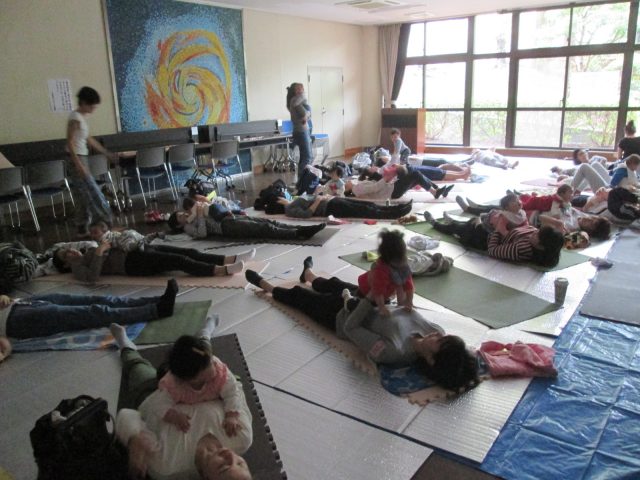 今日はあいにくの天候で傘をさして来ていただくことになり、朝から本当に大変だったと思います。そんな中18名ものお母さんと赤ちゃんにお集まりいただいてとても嬉しく思いました。