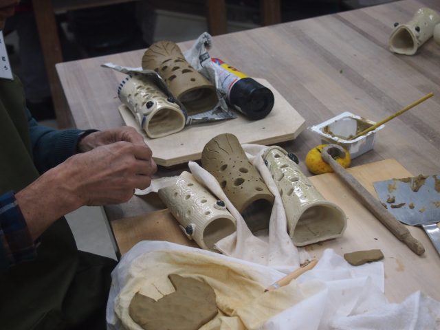 今回のテーマは「端午の節句 “鯉のぼり”を作りましょう」。 陶友会さんの指導のもと可愛い「鯉のぼり」の置き物を作成します。 1日目ですが一気に鯉のぼりのかたちまで作陶していきます。