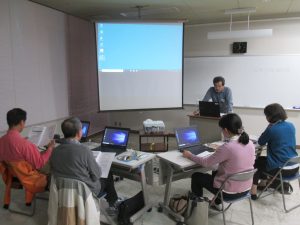 昔、パソコンはある程度機械の事が分からなければ使えなかったのですが、最近は高度にブラックボックス化されて、中の仕組みが分かりにくくなっていますね。その辺は車と一緒かな? これを機に、簡単なプログラミングから初めてパソコンの新たな楽しみ方を見つけて下さい。下の写真は講座風景です。