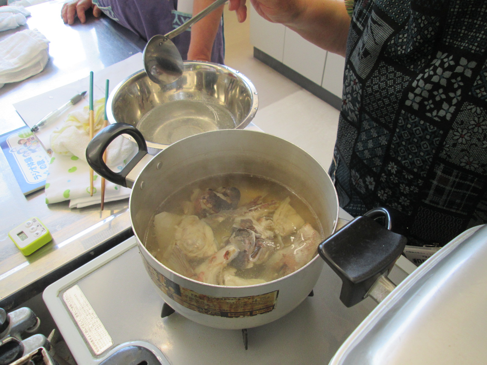 鯛の潮汁は、鯛の頭をきれいに洗ってさっと霜降りにして下ごしらえしたあと、昆布だしとあわせて火加減に注意しながらアクを丁寧に取ります。そして素材のうまみを大切にした透き通った美味しい出汁が出来上がりました♪