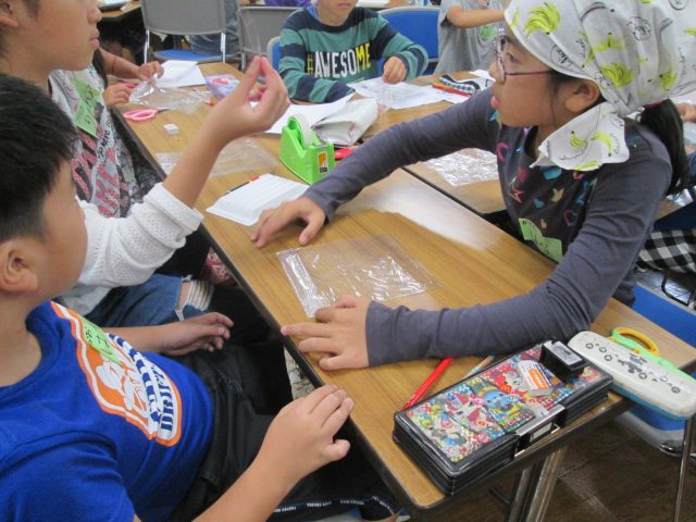 けんちゃん先生と一緒に最近の暑い原因をみんなで考えてみました。「太陽が大きくなっている!?」「太陽が近づいている!?」「大雨のせい?」「電気を使いっぱなしにしているから?」などなどたくさん考えました。