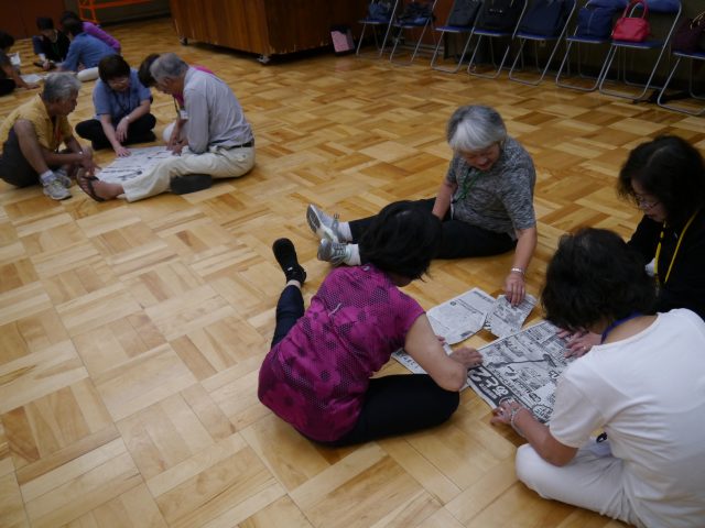 まずは、グループに分かれて新聞パズルに挑戦です。