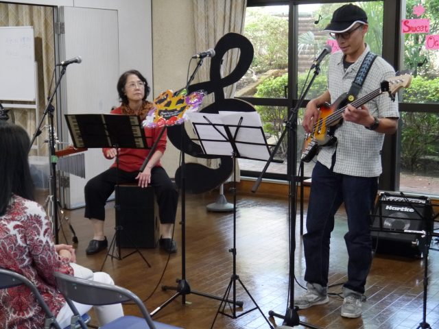 ジャズの名曲から美空ひばりの「りんご追分」まで幅広いジャンルの選曲で、ベースのグルーブ感ある演奏はいつものふれあいライブには無い印象を来館の方も感じられたようです。