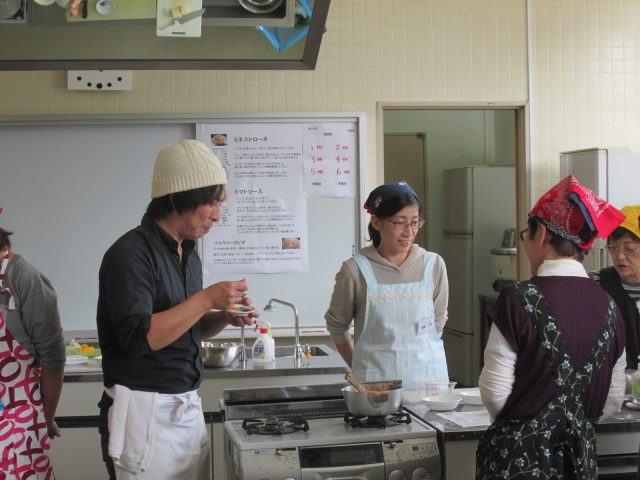 家庭ではブイヨン等使いがちですが、シェフに教えて頂いて無添加の美味しいミネストローネができました!1グループごとシェフが丁寧に味見しながら塩加減、煮込み加減をみてまわってくださったのでどの班も美味しく出来上がりました♪