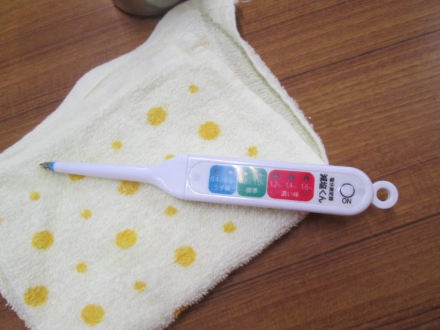 来られた方から順番にお家から持って来てもらったおみそ汁の塩分濃度を測ってもらいました。なかなかこんな機会はないのでみなさん興味深々でチェックしてもらっていました。