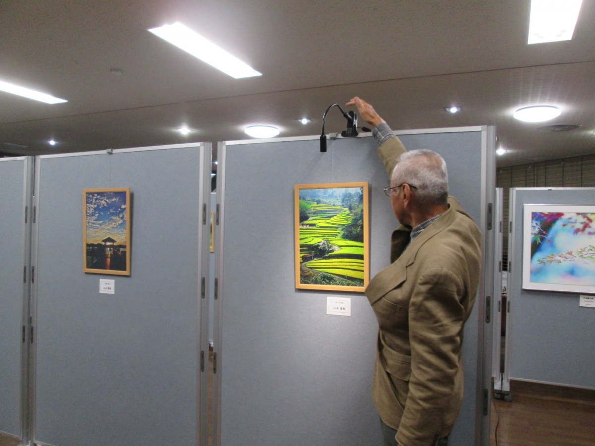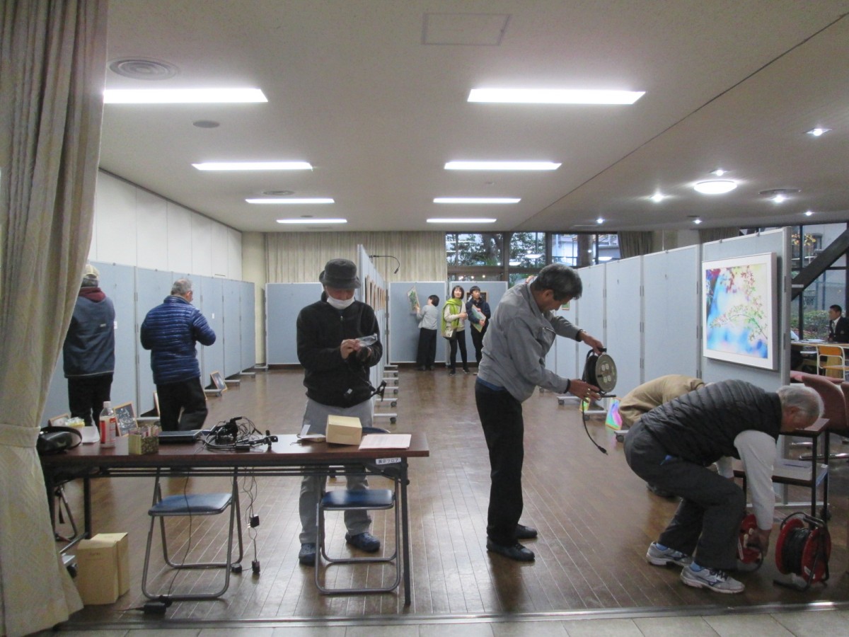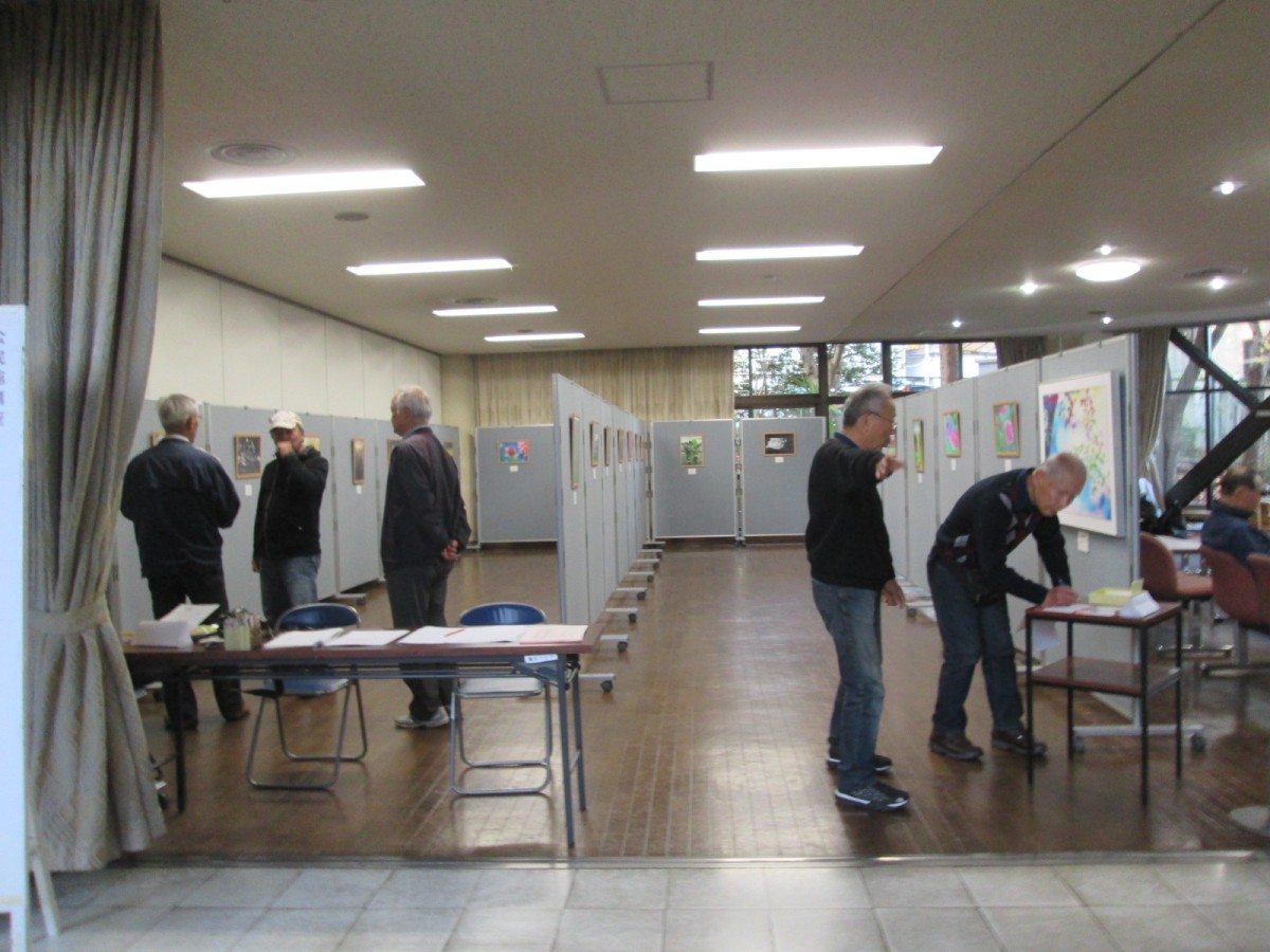期間中、受講者さんたちが日時の都合をつけてくださり、毎日、受付や写真の説明、案内を行ってくれました。お陰様で夜間など、受付がいない時間を除いても384名の入場者がありました。一日平均50人を超しています。終了時、皆さんで集まった時、入場者数を発表すると拍手がおこりました。たくさんの人にみて頂けたこと、うれしくなるような感想をいただいたことも確認しました。