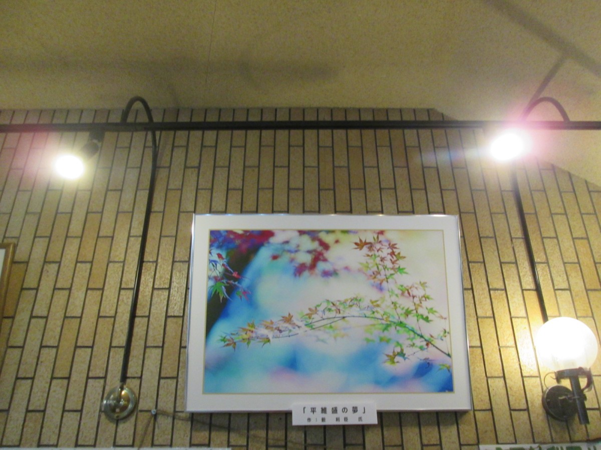 講師にお願いして 講師の展示されていた作品を公民館の正面入り口に飾らせて頂いています。とても華やかな空間になっています。“平維盛の夢” 是非ご覧ください。