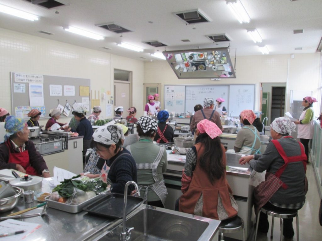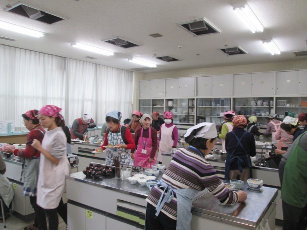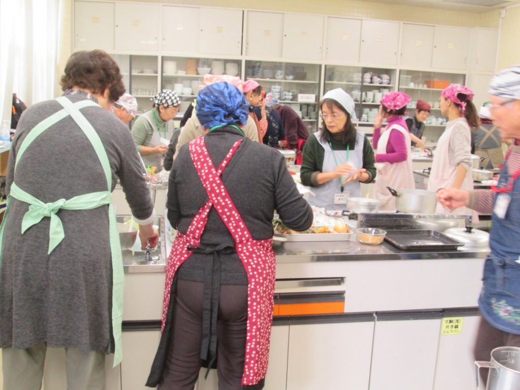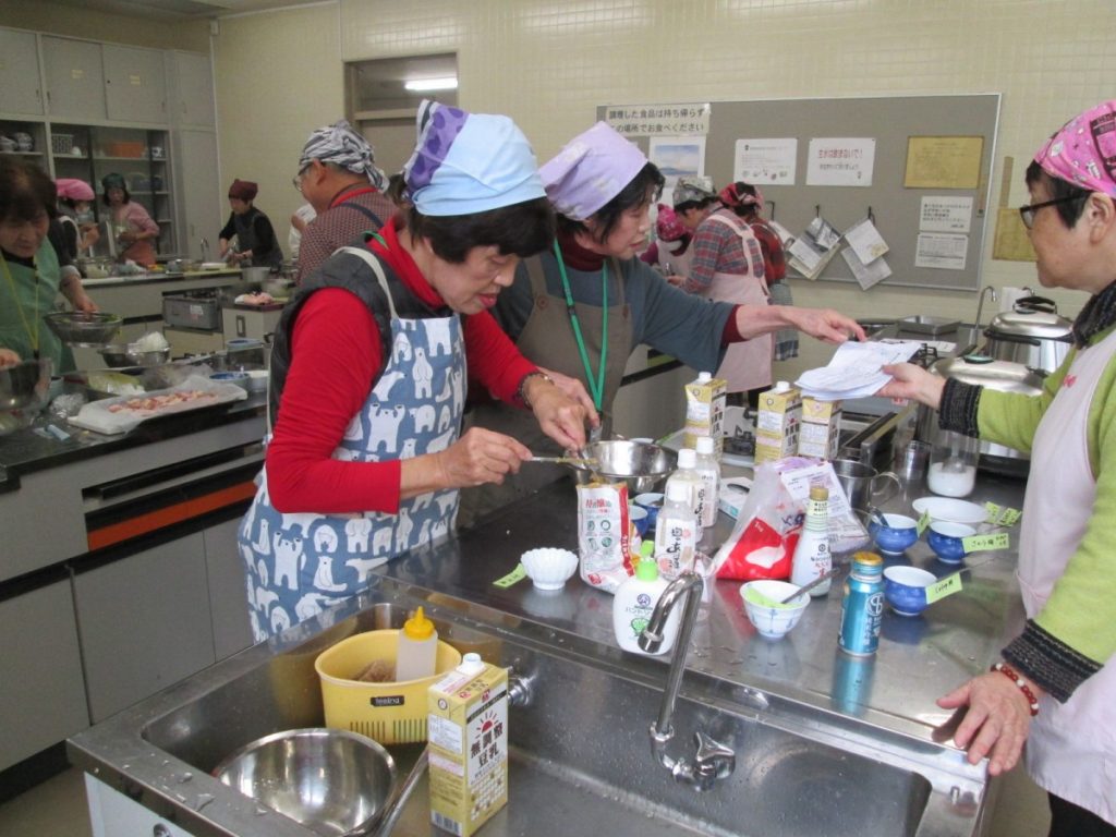 さやま地域活動栄養士会のみなさんの指導のもと、グループに分かれて調理実習を行いました。
