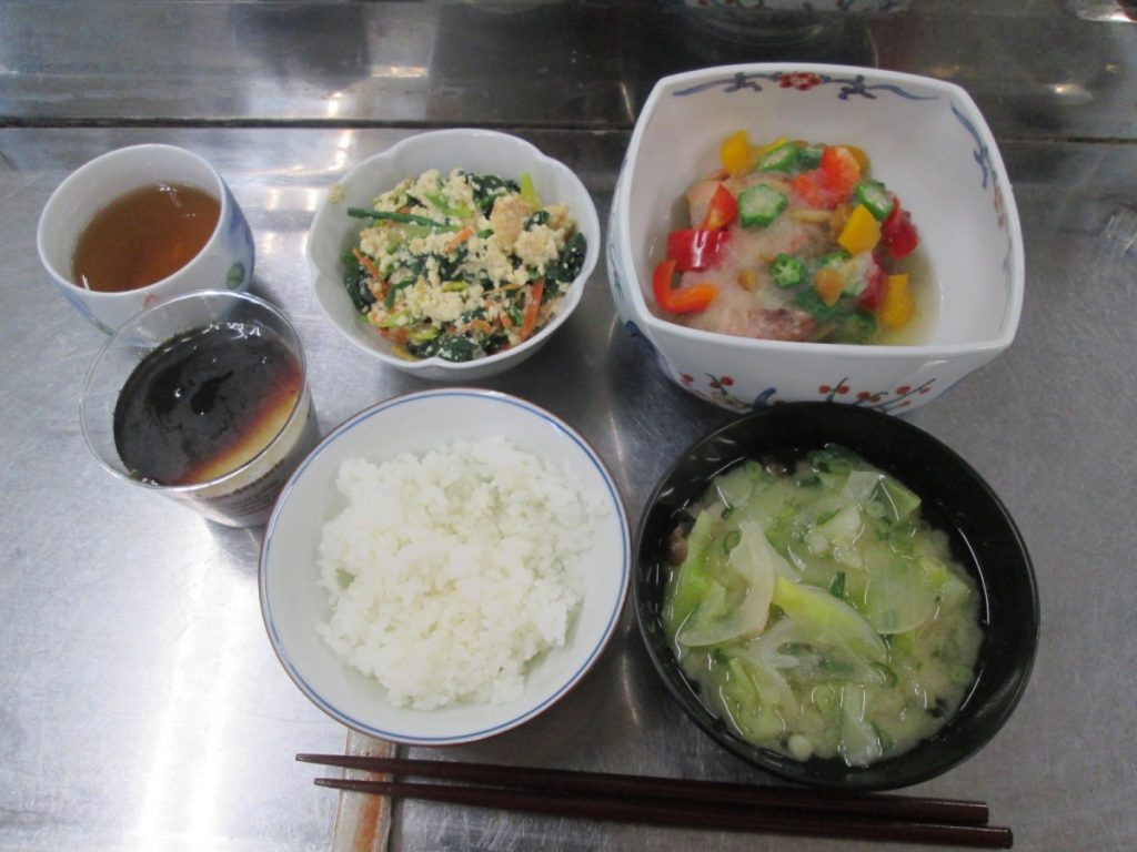 ●鶏肉の塩こうじ焼き ●ほうれんそうの白和え ●みそ汁 ●黒ごま豆乳プリン ●ご飯