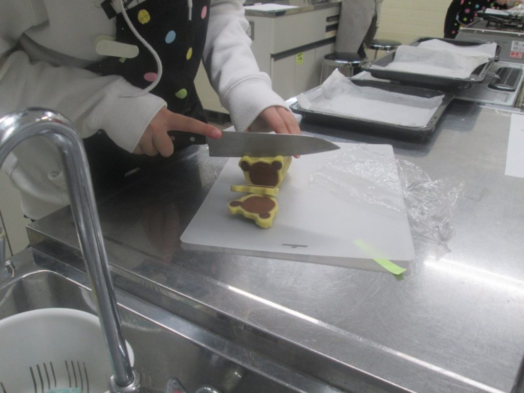 アイスボックスクッキーは、金太郎飴のように作るので、どのように生地を合わせれば形になるのかを教えてもらいました。
