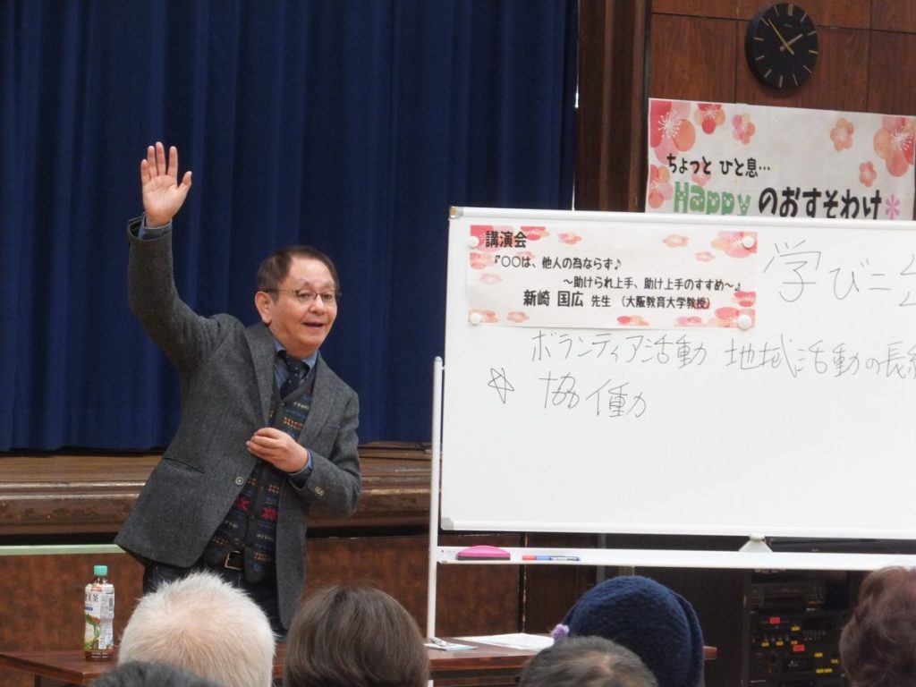 大阪教育大学の新崎国広先生からのお話『○○は、他人(ひと)の為ならず~助けられ上手、助け上手のすすめ~』を聴かせて頂きました。