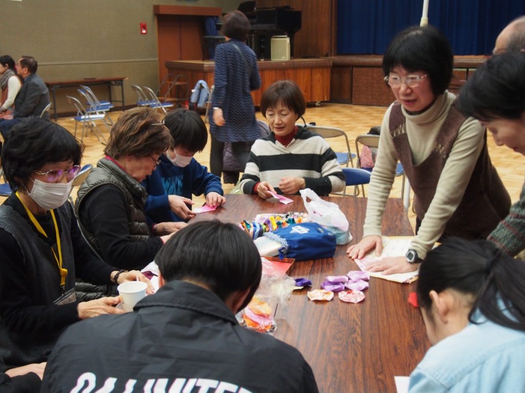 さやまおりがみ倶楽部さんは、折り紙体験のテーブルを、メンズボランティア狭山さんは、工作体験のテーブルを用意してくださり、つくしの会さんはほっこりトークのテーブルを設けてくれました。他にも手話サークルさやま、シルバーアドバイザー狭山のメンバーさんが協力してくれました。