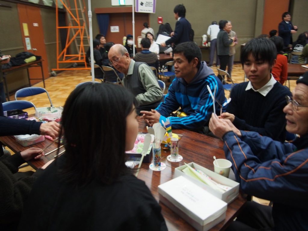 色々な体験やテーマのテーブルを用意して、ぐるぐるチェンジしながら、交流しましょうと企画した時間です。