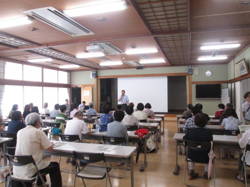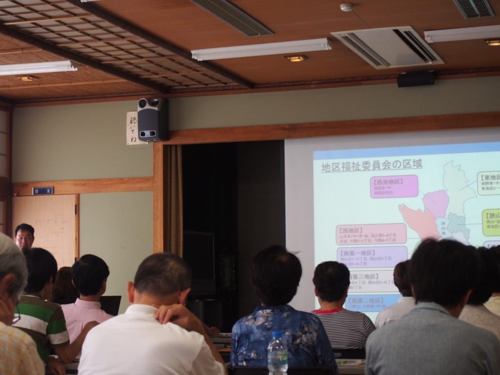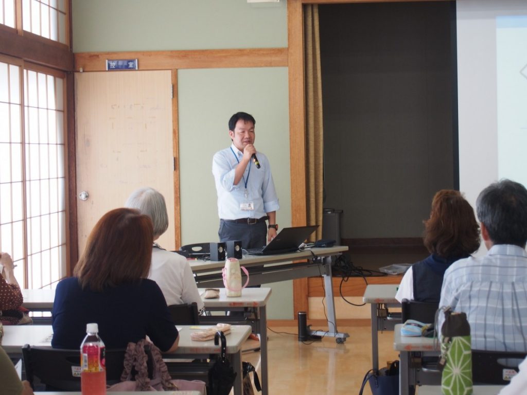 地区福祉委員という方々9地区に分かれて、地域の中の課題解決に取り組まれていることや、ヒューマン・ケア事業(有償ボランティア)の事業などのお話と共に、住んでいる場所、歩いて行ける範囲(地域)の中での支え合いの大切さや、福祉の対象は今や高齢者とは限らないことなど、お話してくださいました。