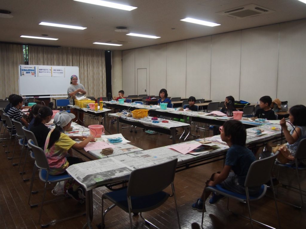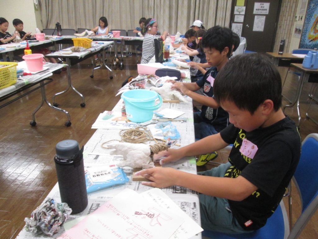 ワイヤーを曲げて、丸めた新聞紙を挟みこみ、木工ボンドをつけながら、毛羽立った紐を巻きつけて、カタチを作る中、それぞれが作りたい形になっていくのが、面白かったです。