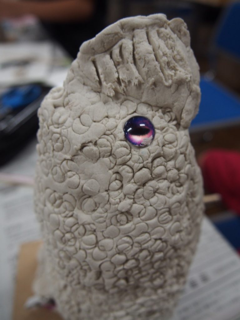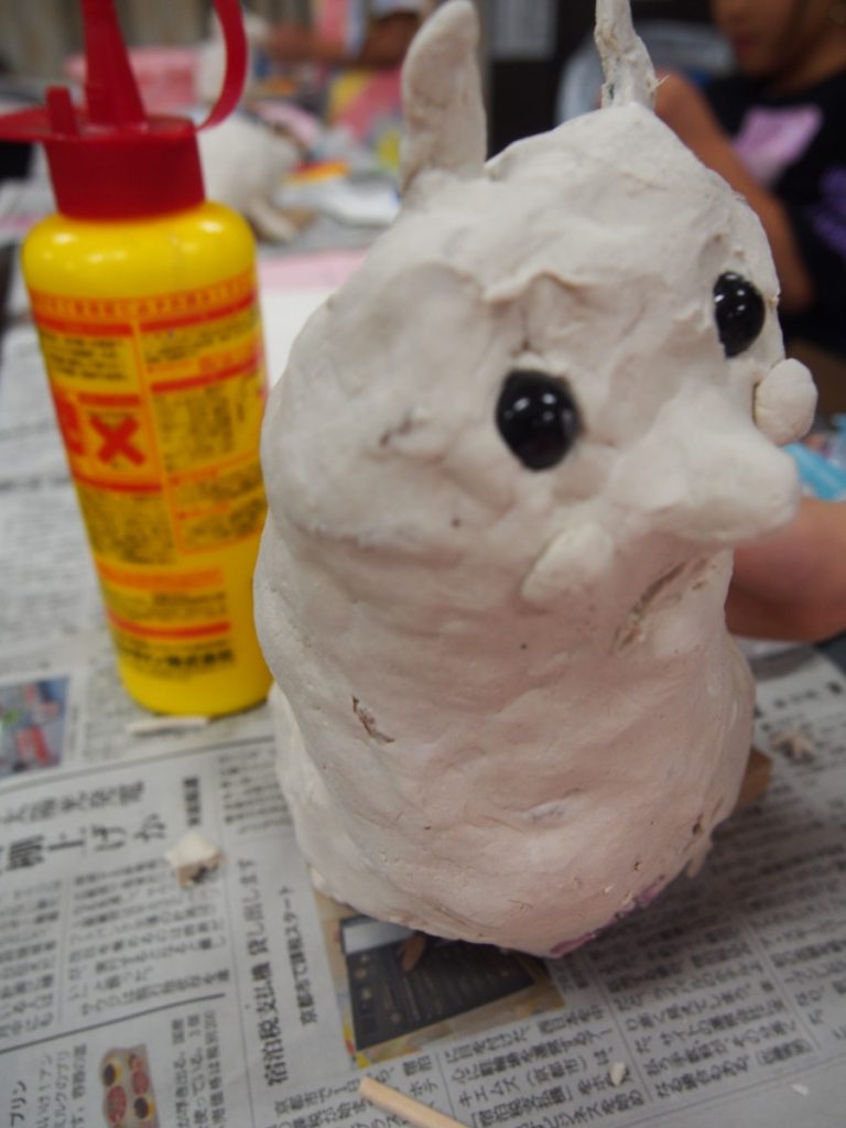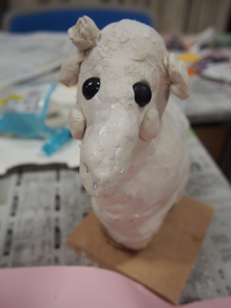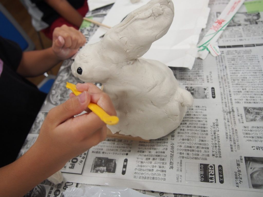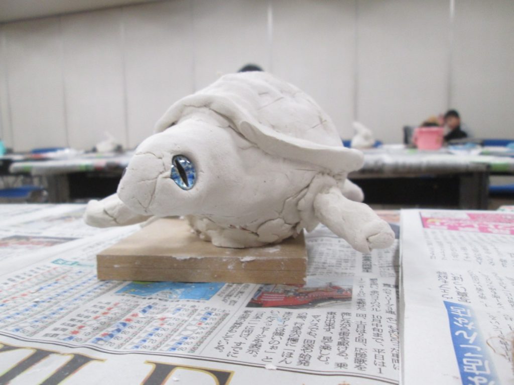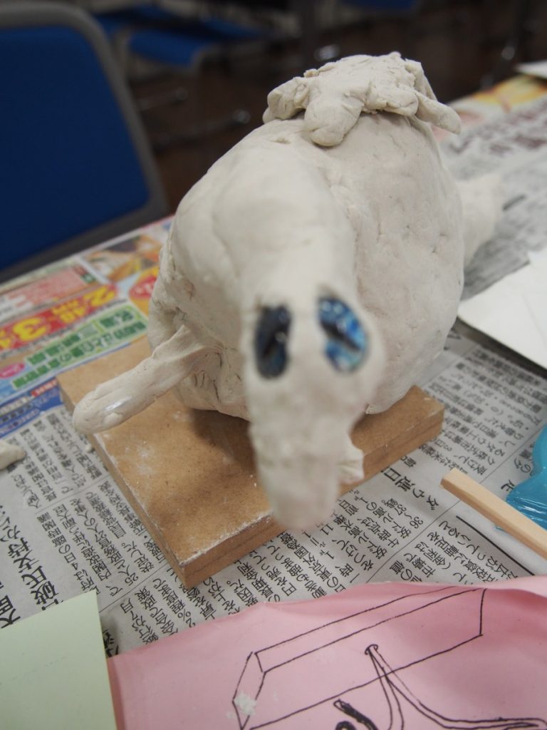 今回は、石粉粘土を使います。少しずつ、手で練って、貼りつけて形を作っていきました。