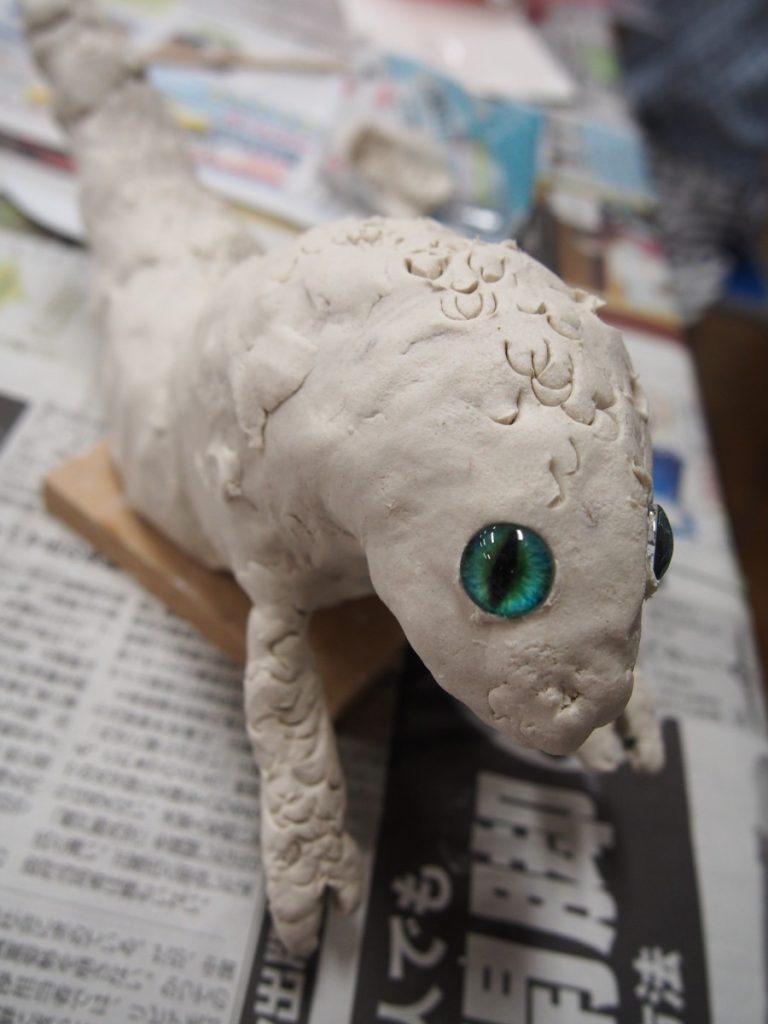 先生からとっておきの”目玉”を頂いて、表情をつくったり、手足や尻尾の動きを作ったり、表面の模様をつけたり…。たまごやミニチュアサイズができたり。