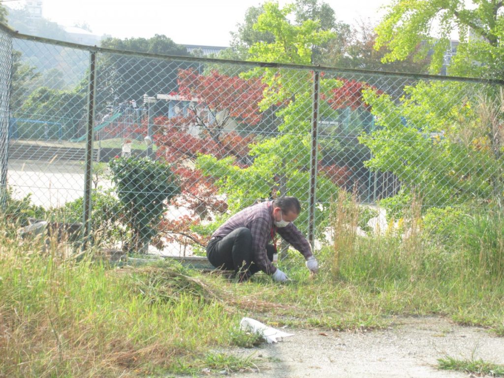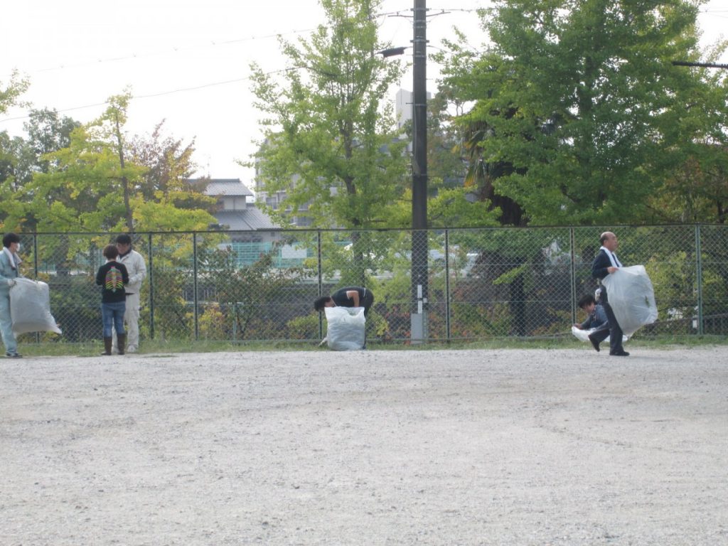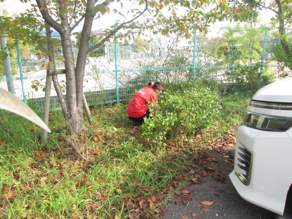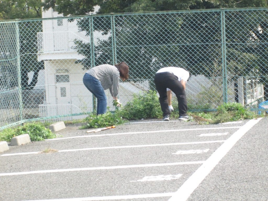 『はばたきフェスタ』前に、キレイにしようということで、駐車場の草刈を社協さん、図書館さんと一緒に行いました。