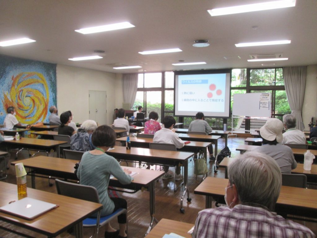 ウイルスの特徴からはじまり、歯周病が全身疾患につながることや、虫歯菌が脳梗塞の原因になることもあることなど、そして、唾液が、虫歯・歯周病をおさえる役割を果たしてくれるというお話をしてくださいました。免疫力をUPするためには、唾液を増やすことと共に、鼻呼吸も大切なんだそう。