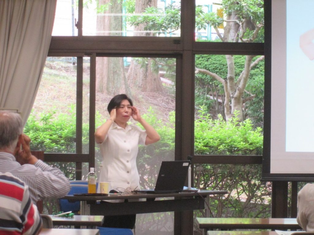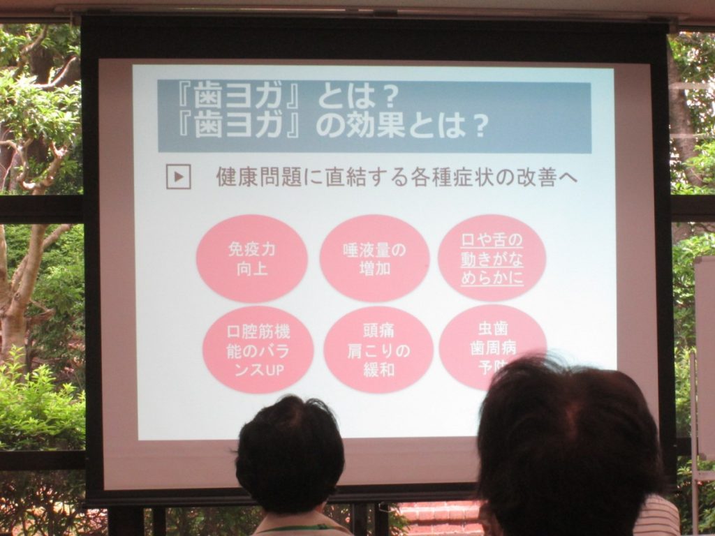お話を聴いたあと、『口腔筋機能』をUPするための、『歯ヨガ』について効果と共に、方法を教わり一緒に試してみました。