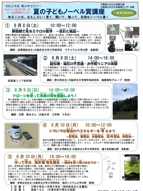 8月8日(土)から10日(月)までの3日間、大阪狭山市立社会教育センターにて