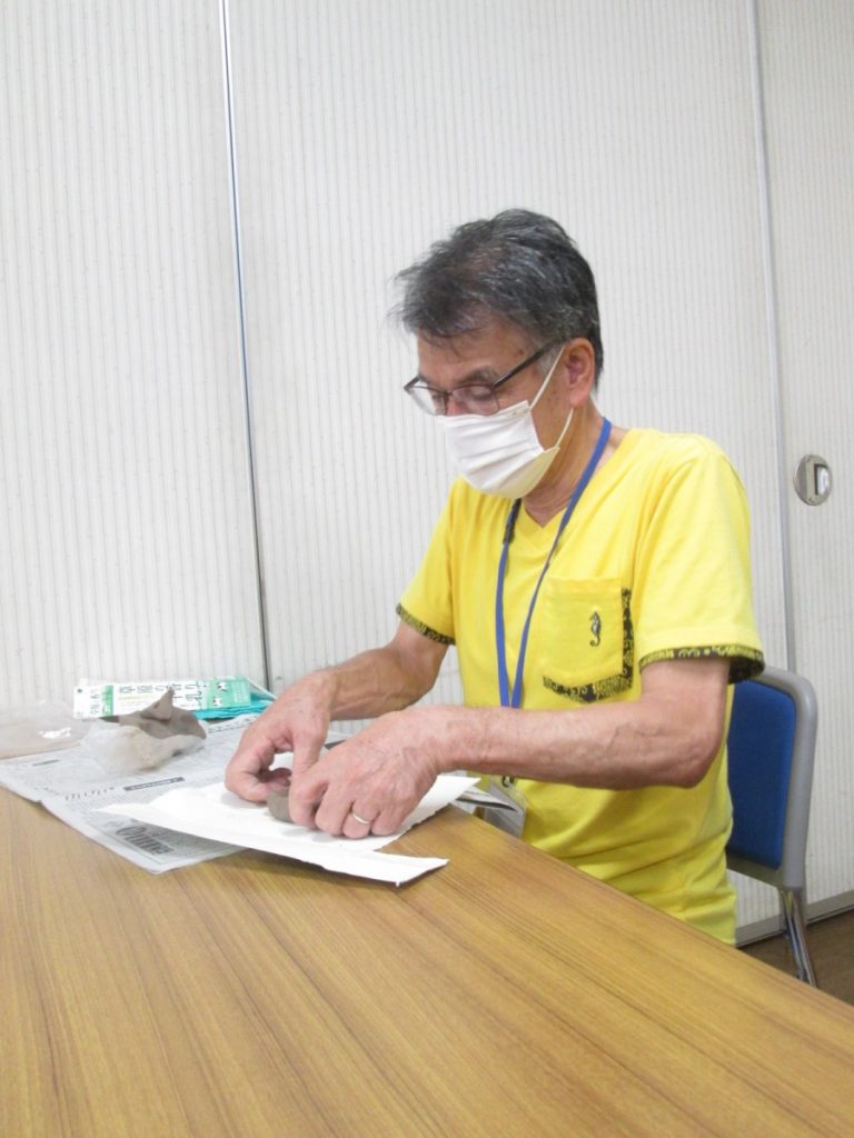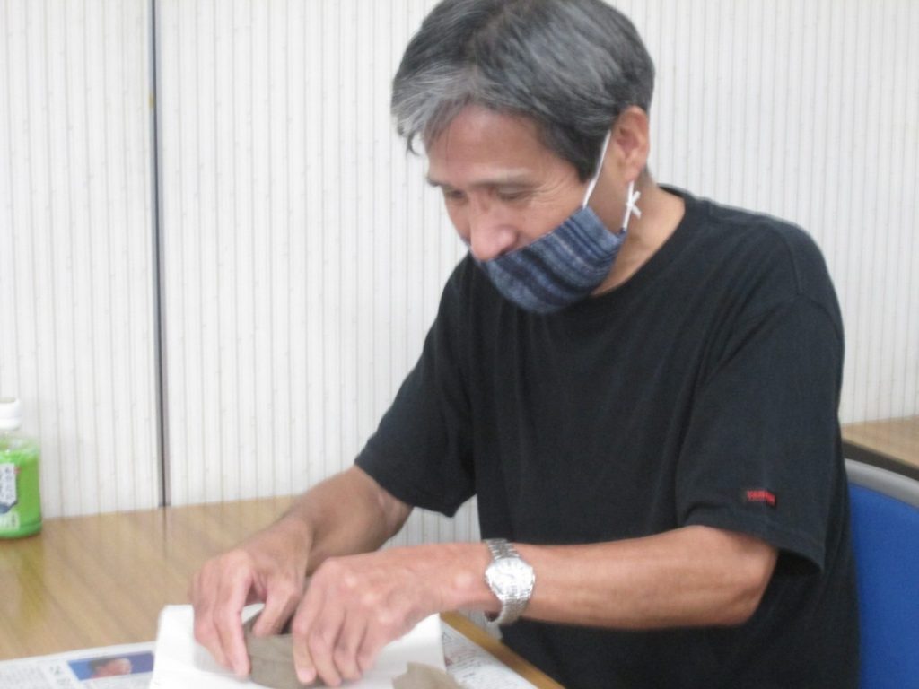 西山台にお店を構えて、陶芸教室もされている布土木(ふどき)の古野克征さんに来て頂き、教えて頂きました。