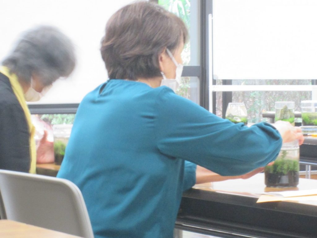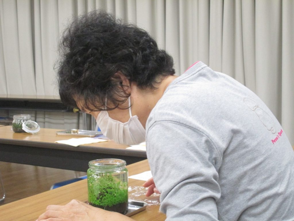 前回、生態系のお話を聴き、瓶の中に土を敷き水草の種を蒔くところまで行い、それぞれ持ち帰り、育てるということをしました。