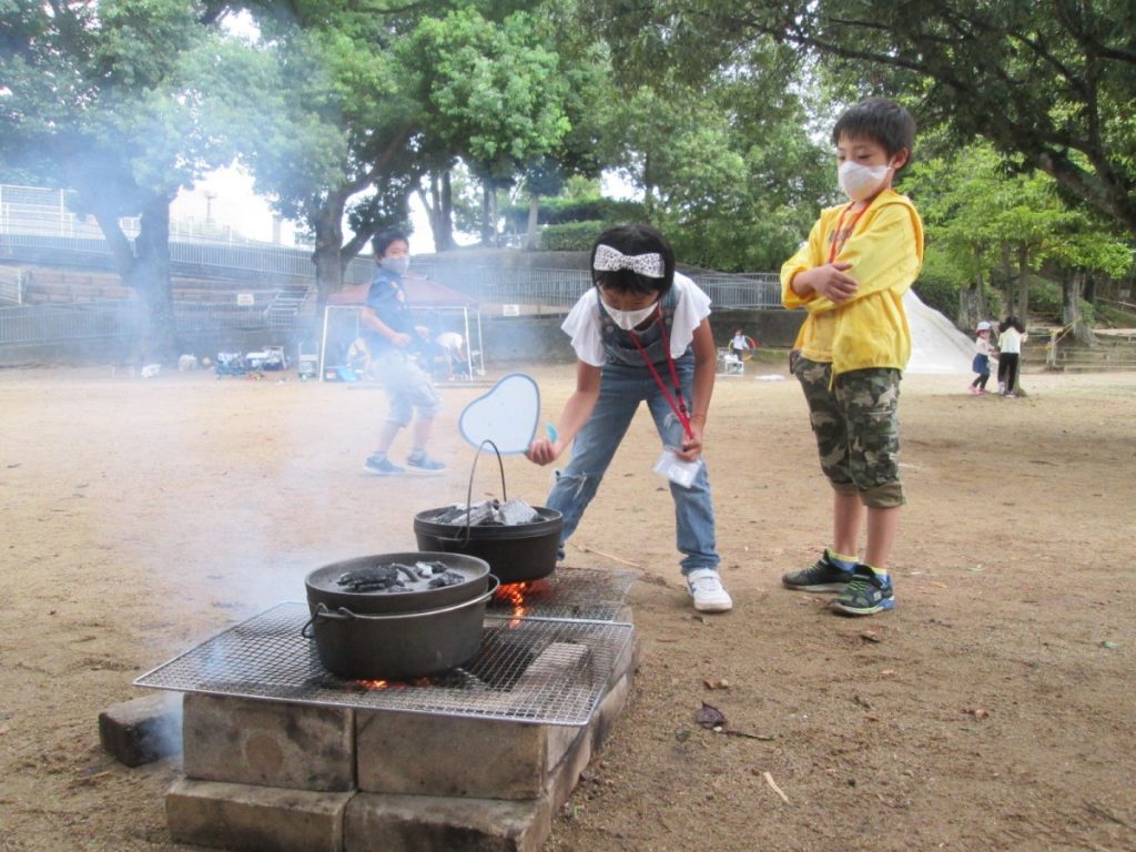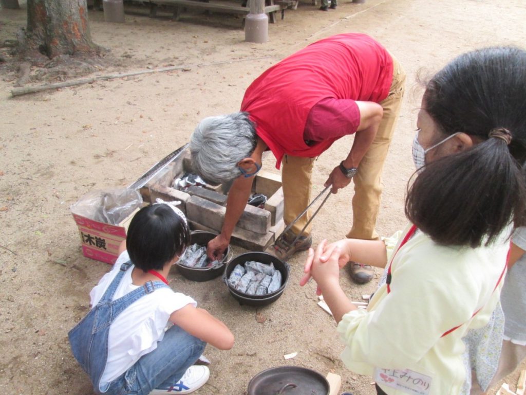 火の熱さにびっくり! 子どもだけ体験するのではなく、大人も体験することで、一緒の経験からの会話ができていました。