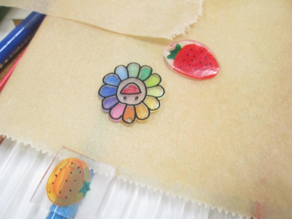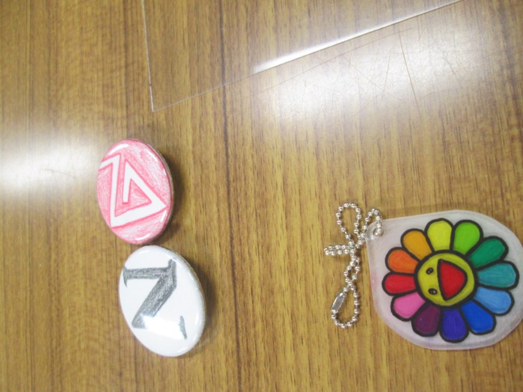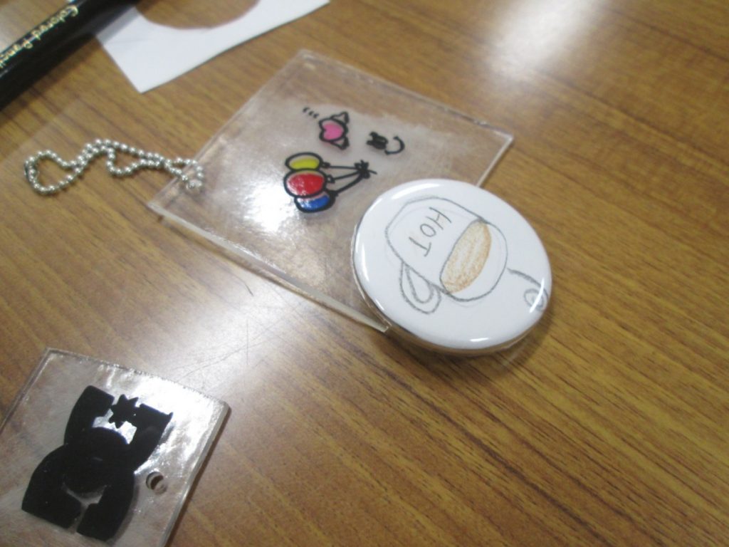 今回は、講師はいない回、担当の簡単な説明のもと、プラバン工作と、缶バッチづくりを行いました。
