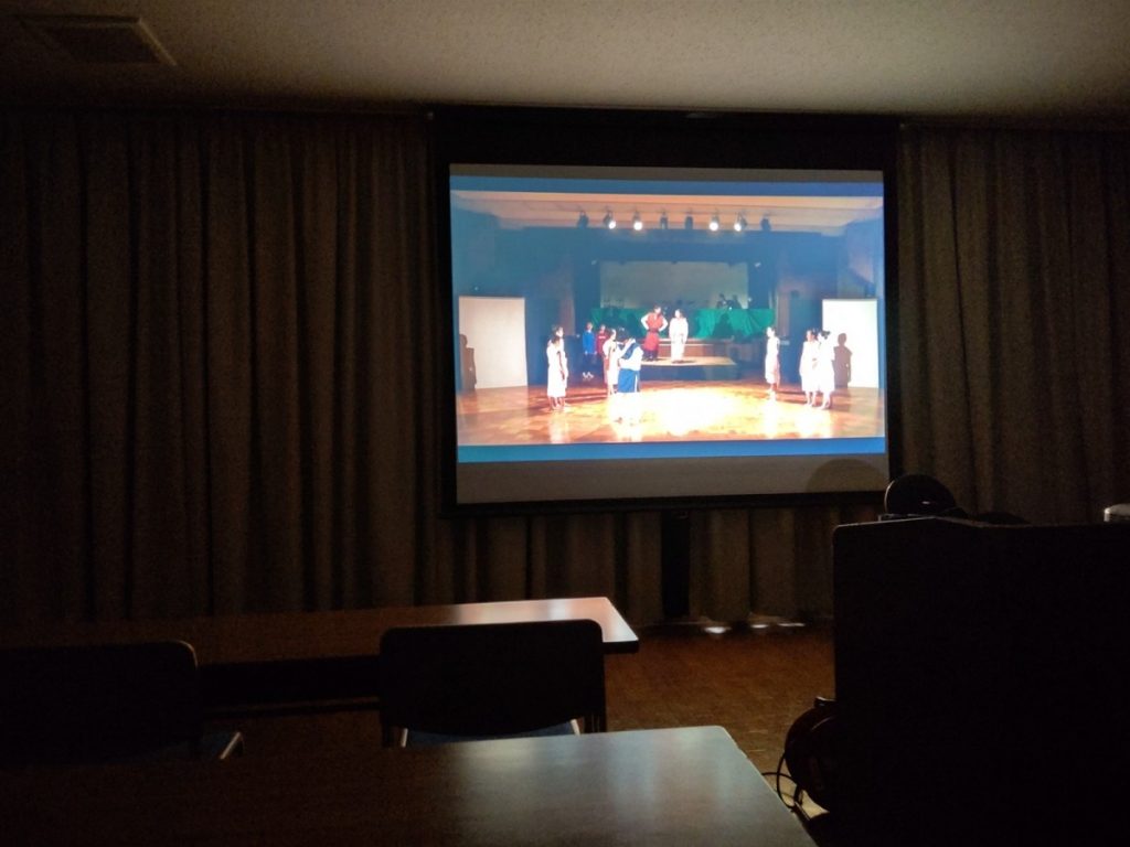 保護者の皆様だけが息遣いまで聞こえる距離での観劇、多目的室では大型スクリーンに映しての小規模ながらパブリックビューイング、そしてYoutube配信という