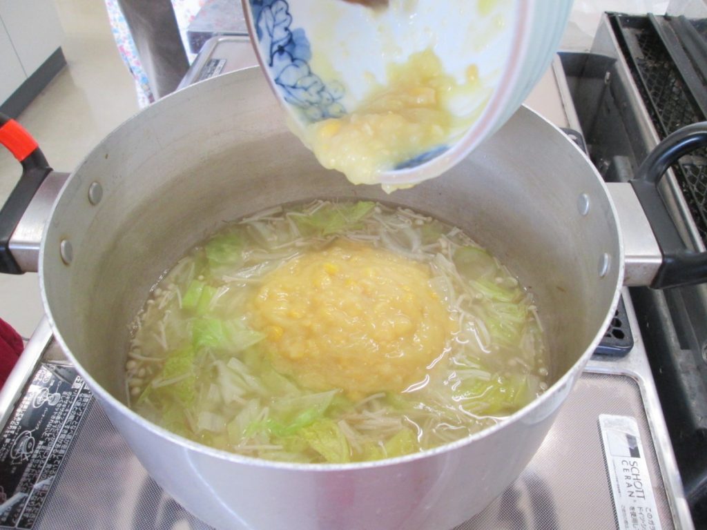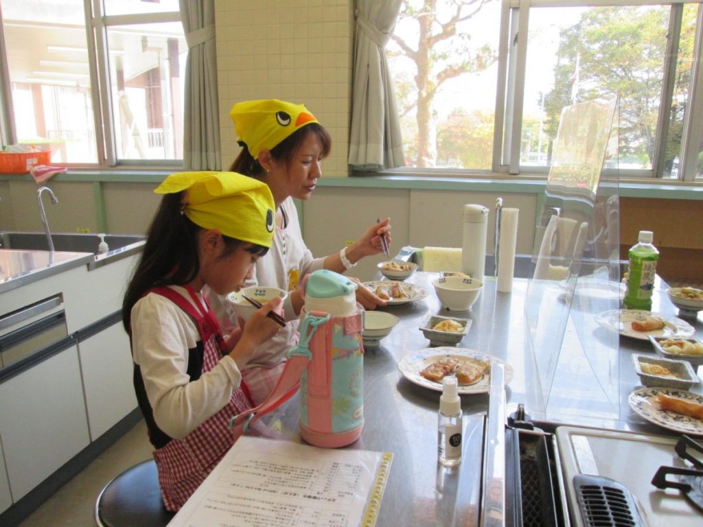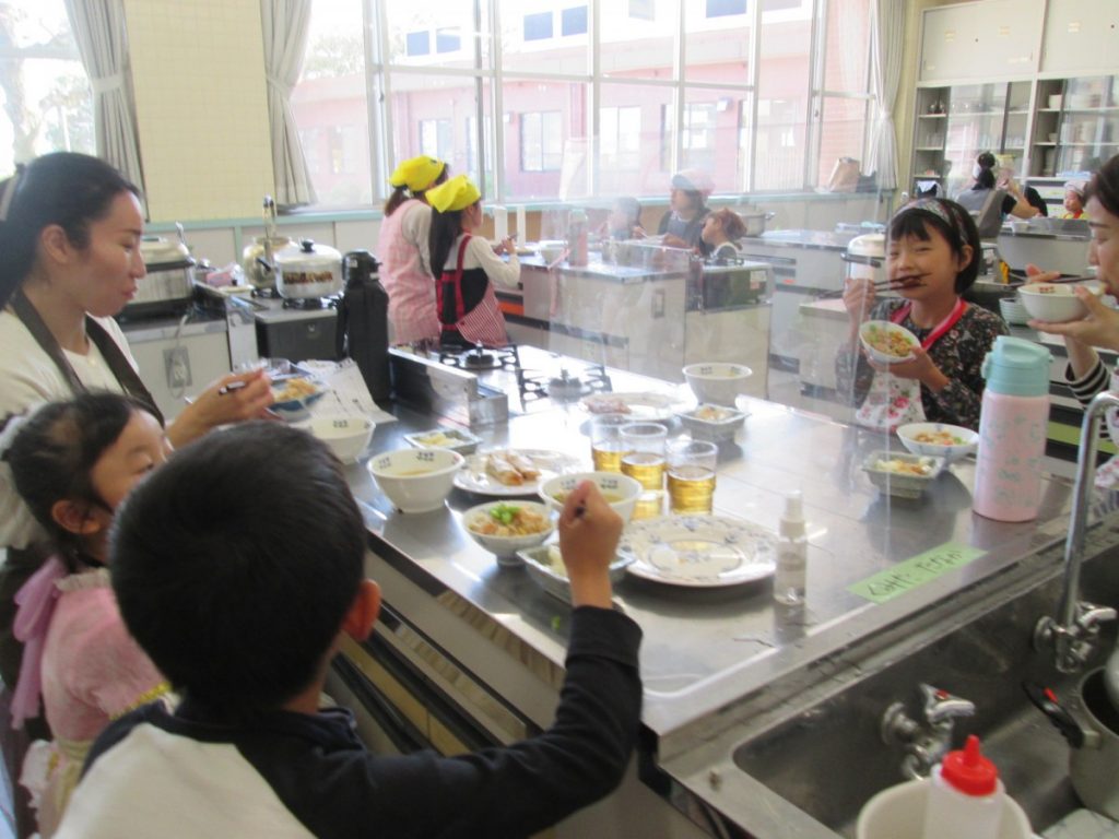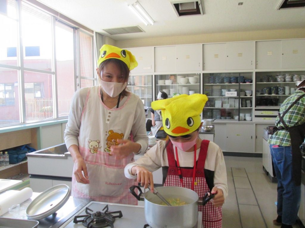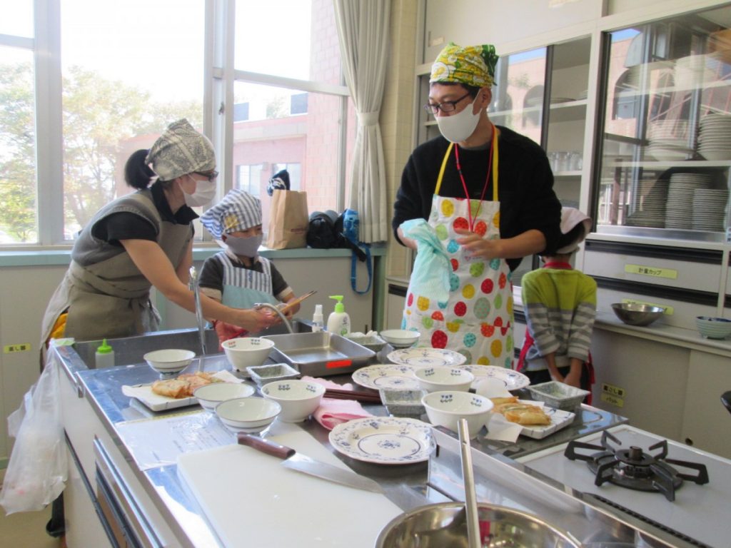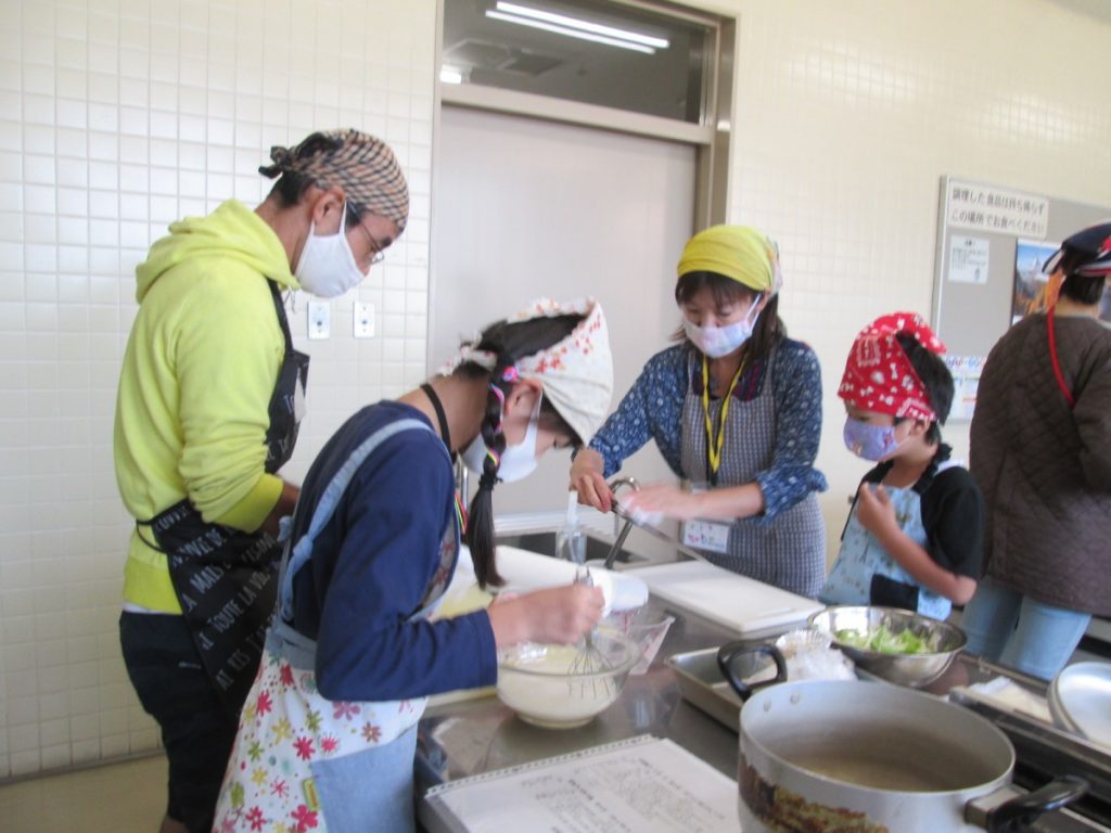 最終回の今回は、『一緒に作ろう&栄養のお話~食欲の秋を楽しもう~』ということで、調理実習を行い試食をし、その後栄養などのお話を聴きました。