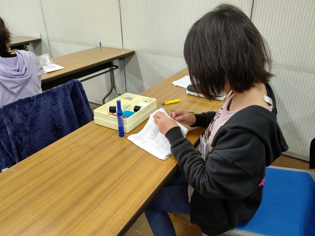 この講座を通じて、参加者(小学生4年生から6年生まで)みんなが糸と針を使って「裁縫」に関する技術を身につけるきっかけになればと願っています。