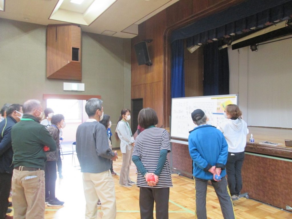 福祉センターさやま荘の職員で、健康運動指導士の時枝恭代さんに、講師として来て頂き、お家でもできる体操やストレッチなどを教わりました。