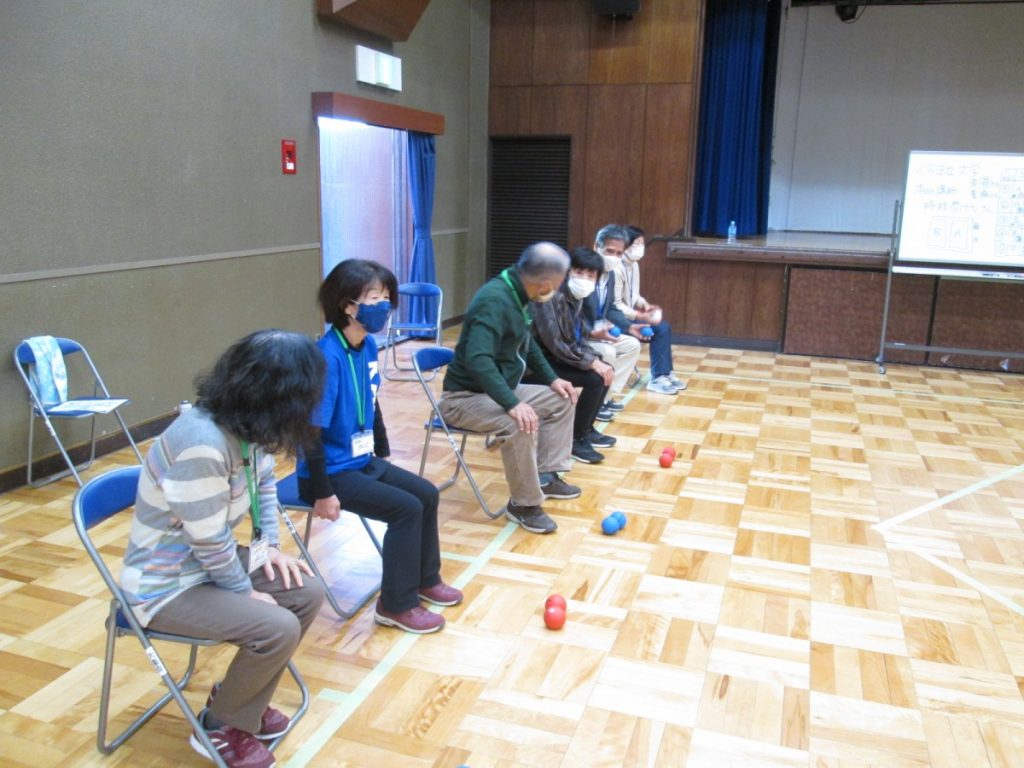 今回は、パラスポーツの一つであるボッチャの用具をお借りして、正式ルールを少し緩くして、くらまな大学ルールで、ボッチャ体験を行いました。