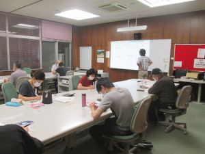 少し難しい話になりましたが、三級はもう少し気軽に学習できますので、受験しなくても、知識として知っていると楽しいと思います。最後に、講座のアンケートの中で講師の経歴の質問があったので、少しお答えしますと、日商簿記一級を持っています。また、少しの間ですが、商工会と、会計事務所に在籍したこともあります。私は、簿記のエキスパートだとは思いませんが、簿記を学習する上で専門用語も覚えますし、経済の話をする時に役に立ちますよ。また、工業簿記も中々面白いのですが…下の写真は講座風景です。