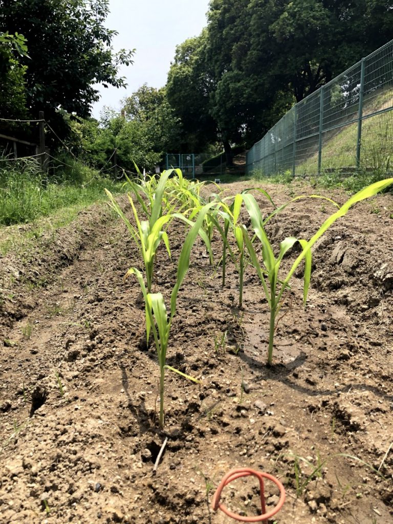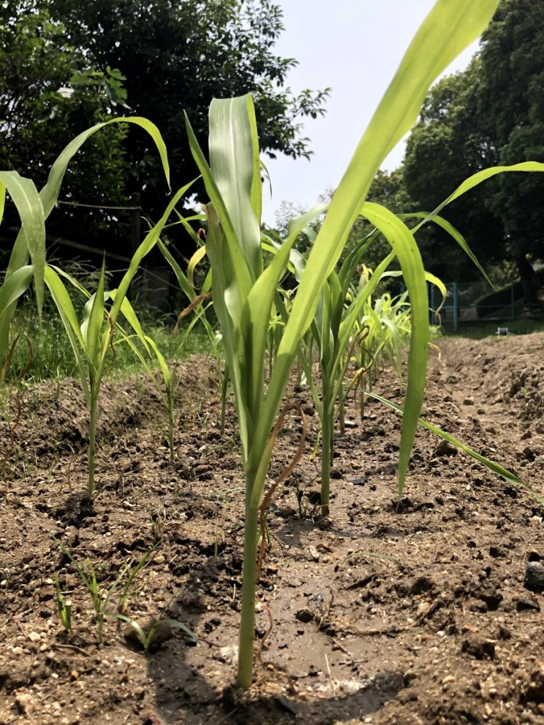 まだまだ、トウモロコシの苗と思ってみるからそのように見えるような段階ですが、これからを楽しみに、育てていきたいと思います![]()