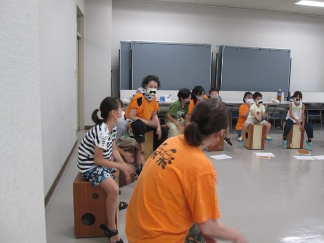 8月10日(火)市内の小学1年生から4年生までが集まり、公民館登録団体の楽楽カホンサークルさんに講師をしていただき、講座がスタートしました。