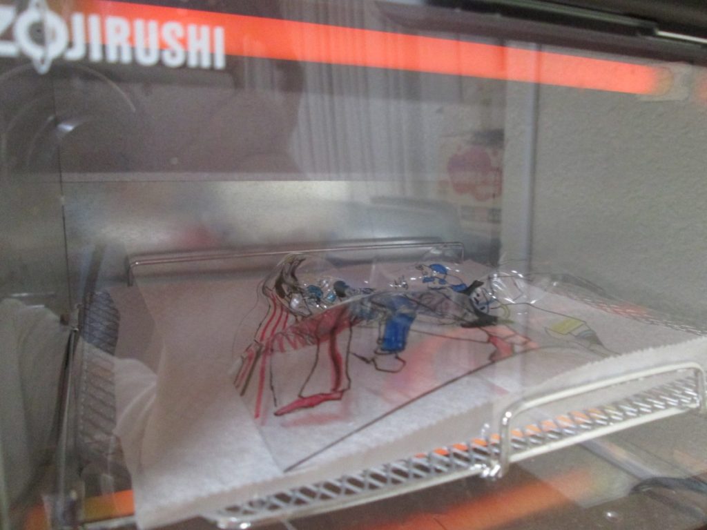 時間をかけて描いてくれていたので、オーブントースターで縮ます時は、「くっつきませんように」と、ドキドキしました。